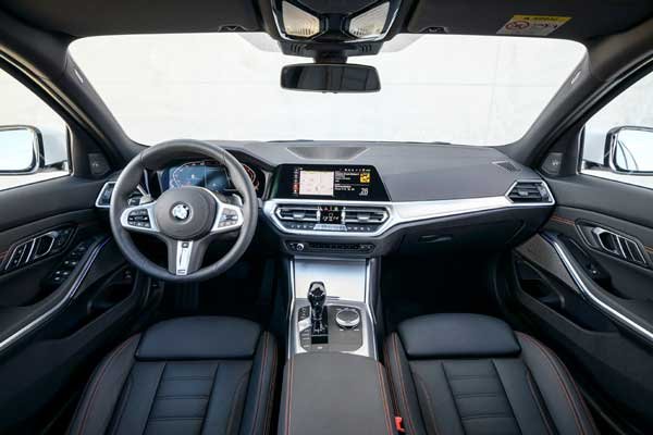 Dentro do novo BMW Série 3, chamam a atenção o ambiente premium de alto refinamento, o ganho de espaço interno, e os equipamentos sofisticados e de tecnologia avançada. Em termos de design, as novas diretrizes de estilo presentes no sedã também podem ser percebidas por meio da disposição dos elementos internos. A nova configuração dos mostradores do moderno painel de instrumentos, a posição mais elevada do console central e o conjunto formado pela iluminação, cluster e guarnições das portas favorecem à uma percepção de maior espaço, além de contribuir para uma aura mais esportiva e claramente orientada para o motorista. No centro do painel, o mostrador digital, as teclas do ar condicionado e as saídas de ventilação formam um único quadro, enquanto o console central agrupa a nova alavanca de câmbio, o botão seletor giratório do sistema iDrive, e o botão de acionamento do motor, este acomodado em uma elegante moldura. Os faróis, por sua vez, são operados a partir de botões situados à esquerda do volante revestido de couro.