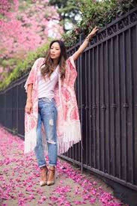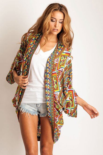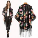 Mais uma vez a moda se inspira na vestimenta típica japonesa e agora traz uma versão moderna e fácil de usar do kimono. O kimono atual aparece em tecidos fluidos – seda, por exemplo –malha ou tricot. Pode ser curto, na altura dos joelhos ou longo. Muitos vêm acompanhados de franjas na barra e nas mangas, o que deixa a peça ainda mais charmosa e feminina.
