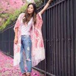 O kimono é ótimo para ser usado como 3ª peça e compor um look mais interessante; pode facilmente substituir um colete, cardigã ou jaqueta. Perfeito para tirar o combo jeans + camiseta do lugar comum, o kimono veste mulheres de todas as idades e tipos físicos. Se você for mais cheinha, a dica é optar por um modelo que não seja folgado demais e com cores escuras e/ou estampas miúdas. Além disso, é uma peça que transita em diversos ambientes epode ser usada a qualquer hora do dia.