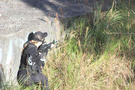 E engana-se quem acha que airsoft é só para homens. Há mulheres sim atrás das armas e no campo. As amigas Fernanda da Silva e Michele Rudolf sempre acompanharam os maridos nos eventos de airsoft. Até que decidiram participar: uniformizadas, com as armas em punho e maquiadas, sem deixar de lado a vaidade e dando um toque feminino ao airsoft. “Deu medo no início, de acertar o rosto, mas depois que você leva a primeira bolinha, vê que a dor é tranqüila e não tem mais medo”, declara em meio a risos Fernanda.