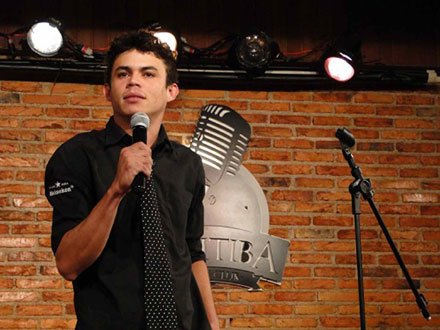 Foto não muito antiga com o humorista Emerson Ceará, que no primeiro dia da semana deu um show no Domingão do Faustão. Um batalhador, que descobriu sua vocação trabalhando de garçom no Curitiba Comedy Club – notem a camisa, primeiro clube de comédia do Brasil.
