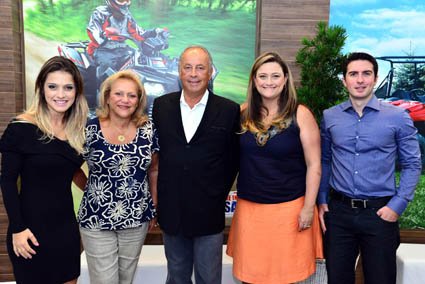 Registro da inauguração da concessionária AR3 Racing. Da esquerda para a direita: Erika Rocha, comercial nacional da marca Polaris – que será comercializada na loja; Regina Pedroso, Ernesto Pedroso, Andréia Pedroso e o gerente de marketing nacional da Polaris, Paulo Brancaglion.