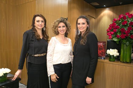 Adriana Lorenzoni, diretora comercial da Bergerson, Irene Bizinelli, gerente da loja do ParkShoppingBarigüi, e Karine Sackser, supervisora comercial da marca, no coquetel de lançamento do Cronógrafo Calibre de Cartier.