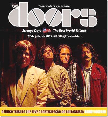 Formada em Los Angeles, a Strange Days é a mais impressionante e realista banda tributo ao The Doors. Eles capturam a magia, o misticismo, a improvisação, a loucura, a teatralidade e a ferocidade musical do lendário grupo. Ansiosos para estrear no Brasil, o grupo enviou mensagem aos fãs através de video publicado no Youtube.