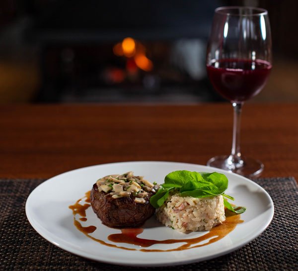 No cardápio, duas opções de antepasto: Patê de tomate seco e alecrim ou Manteiga de limão siciliano (ambos seguem a mesa acompanhados por torradas). Como opções de entradas: Creme de palmito ou Queijo de búfala, Tomate assado com rúcula e azeite de oliva. Prato principal: Estrogonofe de camarão, arroz e palha de mandioca ou Mignon com molho de cogumelos Paris e arroz piamontese coberto com rúcula. Para finalizar: Fondue de doce de leite com frutas (morangos e uvas).
