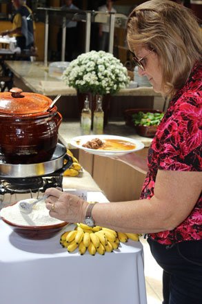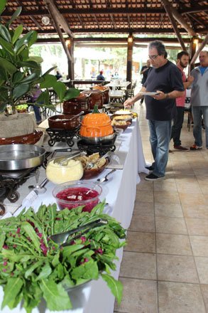 Além do tradicional risoto, o cardápio do Buffet do Passeio Público contou com risotos de cordeiro, tomate seco com rúcula e funghi. A feijoada, o barreado e a quirera tiveram como acompanhamentos couve refogada, farofa de amendoim, charque com moranga, pão e vinagrete. De sobremesas, doces tipicamente caseiros, como doce de banana, de coco, pudim e frutas em calda.