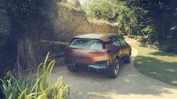 O BMW Vision iNEXT exibe a poderosa e robusta postura de um moderno SAV BMW quando visto de lado. As proporções funcionais da silhueta do veículo e a linha de teto longa já indicam o amplo espaço interno. A longa distância do entre eixos e as extremidades curtas, entretanto, conferem ao perfil do veículo uma aparência dinâmica. As grandes rodas de 24 polegadas são aerodinamicamente eficientes, e seu design tridimensional representa um destaque estilístico e funcional. Câmeras assumem o trabalho dos espelhos retrovisores externos, enquanto grafismos iluminados e sensíveis ao toque assumem o lugar dos puxadores das portas convencionais. Há ainda duas grandes portas que se abrem em sentido oposto e sem a presença de uma coluna B separando-as. Quando abertas, elas oferecem uma visão sem obstáculos do interior espaçoso. Na parte traseira, o arranjo horizontal das linhas e superfícies cria uma sensação de amplitude e dinamismo. As luzes traseiras delgadas e distintas estendem-se por toda a traseira e enfatizam sua aparência. A parte posterior do teto traz um difusor para melhorar a aerodinâmica do carro.